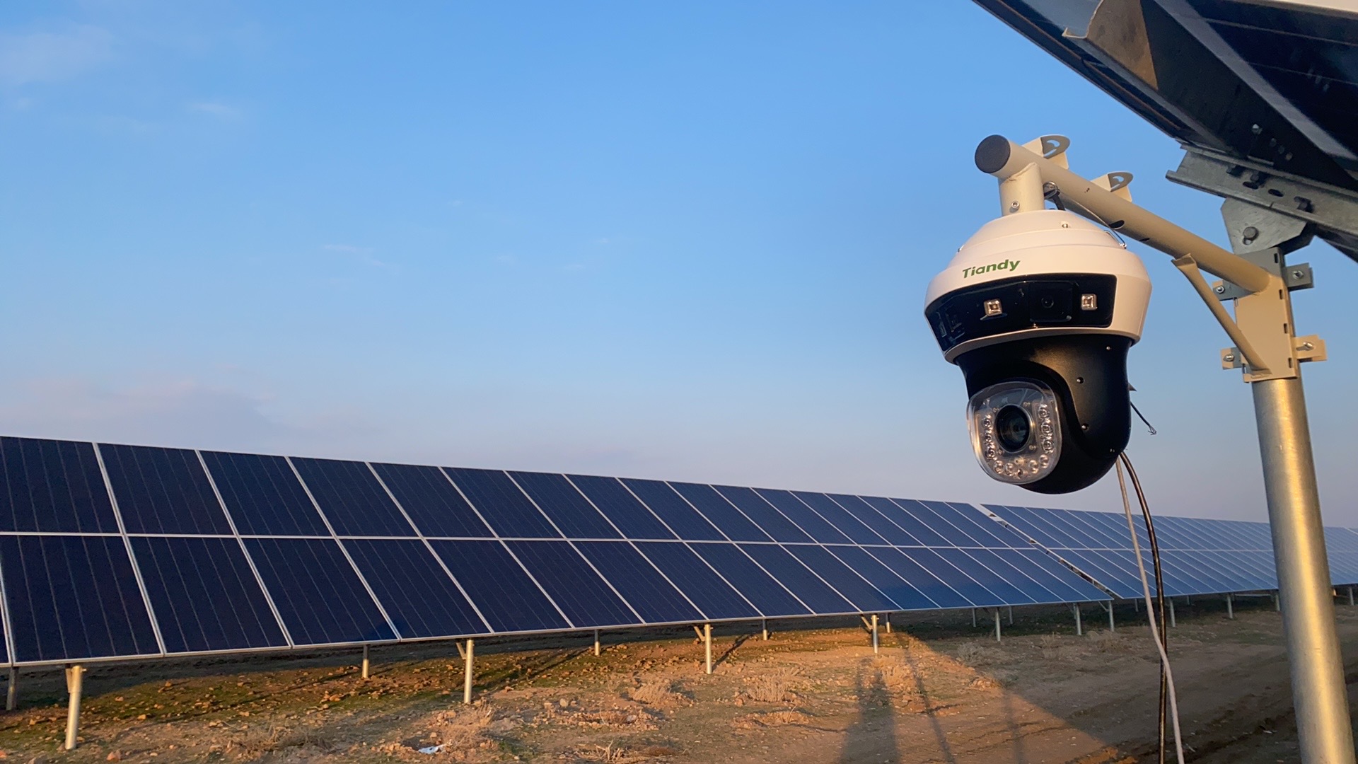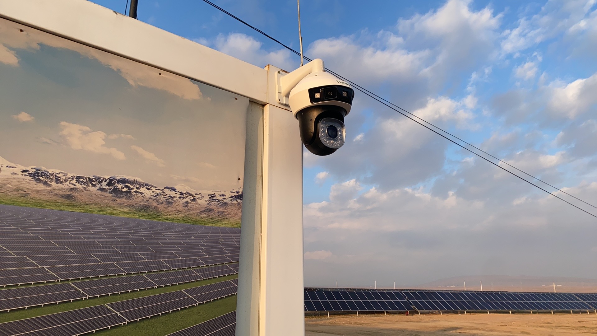 在這里,部署有天地偉業(yè)國際極晝低空全景球和主動智能兩款產(chǎn)品。天地偉業(yè)極晝低空全景球支持全景畫面+球機(jī)畫面二合一,掌控全局,把握細(xì)節(jié)。具有水平190°和垂直75°的視野范圍,可以全方位、全天候地守護(hù)電站的周界安全。1/10000lux 的超低感光度,不懼黑夜來臨,在極低照度環(huán)境下仍按可以精準(zhǔn)捕捉電站的每一個角落和細(xì)節(jié),為電站安全提供可靠有力的保障。同時還能有效的監(jiān)控出入口的行人活動和機(jī)動車輛,確保光伏電站的安全無虞。